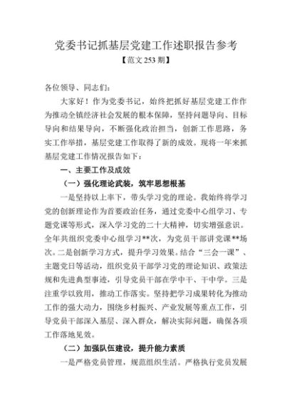 / 范文253期-党委书记抓基层党建工作述职报告参考