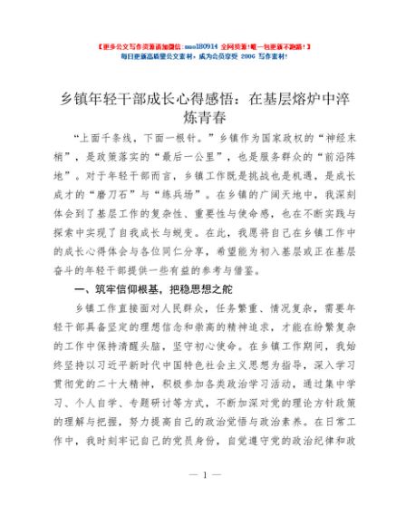 / 乡镇年轻干部成长心得感悟:在基层熔炉中淬炼青春