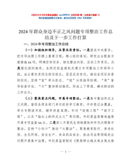 / 2024年群众身边不正之风问题专项整治工作总结及下一步工作打算