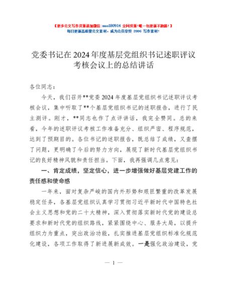 / 党委书记在2024年度基层党组织书记述职评议考核会议上的总结讲话