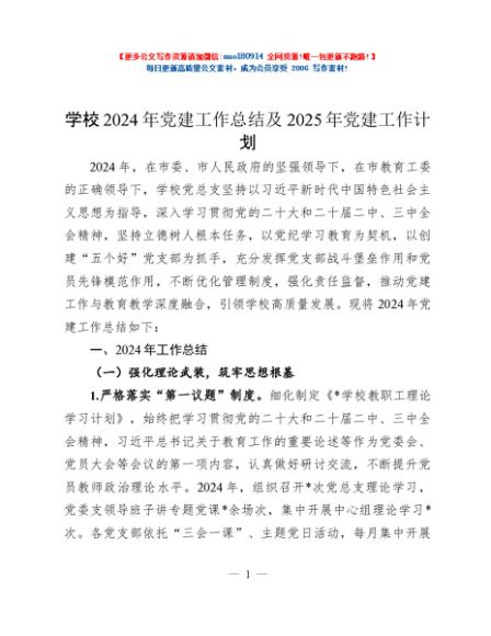 / 学校2024年党建工作总结及2025年党建工作计划