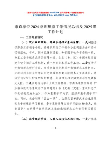 / 市直单位2024意识形态工作情况总结及2025年工作计划