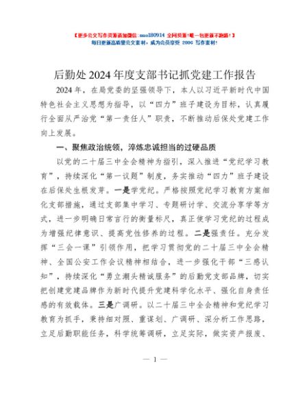 / 后勤处2024年度支部书记抓党建工作报告