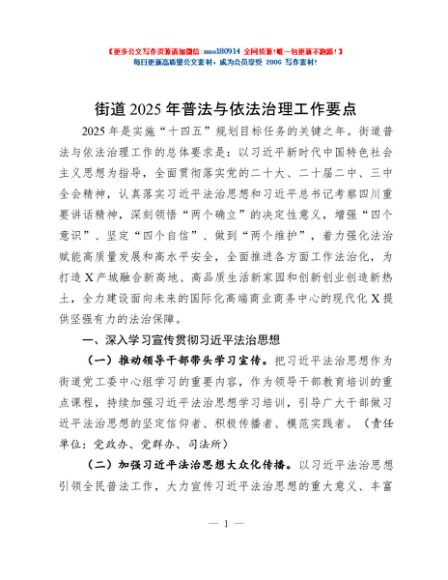 / 街道2025年普法与依法治理工作要点