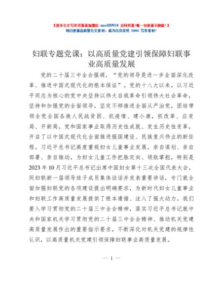 / 妇联专题党课:以高质量党建引领保障妇联事业高质量发展