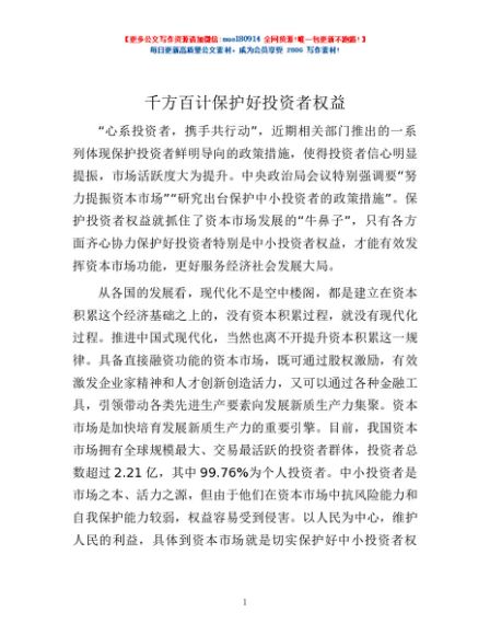 / 千方百计保护好投资者权益