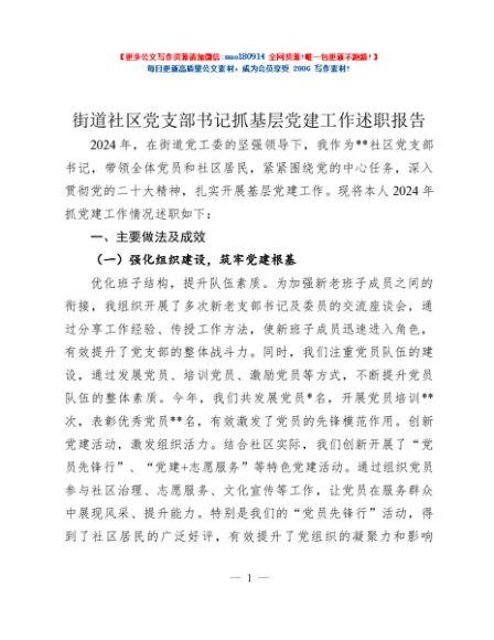 / 街道社区党支部书记抓基层党建工作述职报告