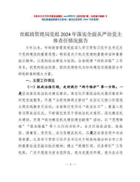 / 市邮政管理局党组2024年落实全面从严治党主体责任情况报告