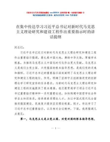 / 在集中传达学习习近平总书记对新时代马克思主义理论研究和建设工程作出重要指示时的讲话提纲