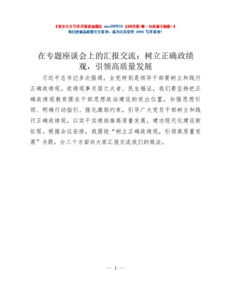 / 在专题座谈会上的汇报交流:树立正确政绩观,引领高质量发展
