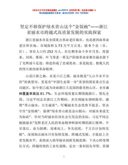 / 坚定不移保护绿水青山这个“金饭碗”——浙江省丽水市跨越式高质量发展的实践探索