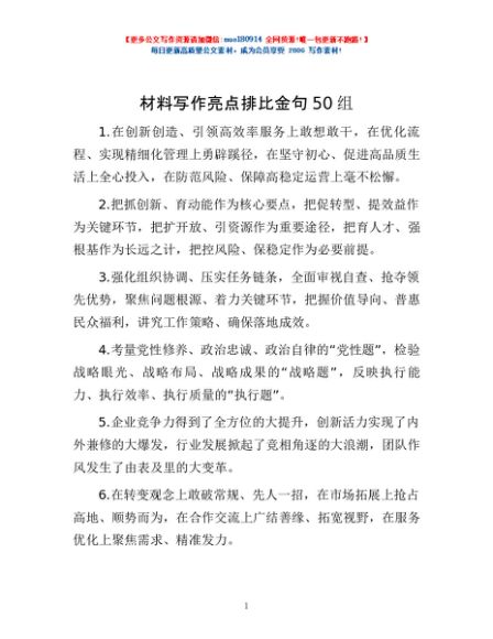 / 材料写作亮点排比金句50组
