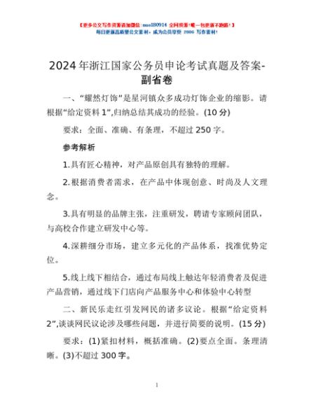 / 2024年浙江国家公务员申论考试真题及答案-副省卷