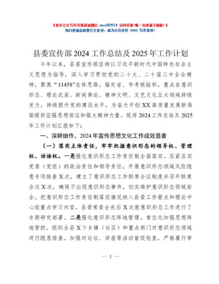 / 县委宣传部2024工作总结及2025年工作计划