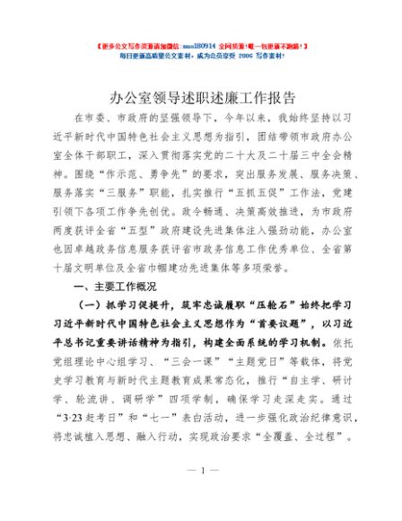/ 办公室领导述职述廉工作报告