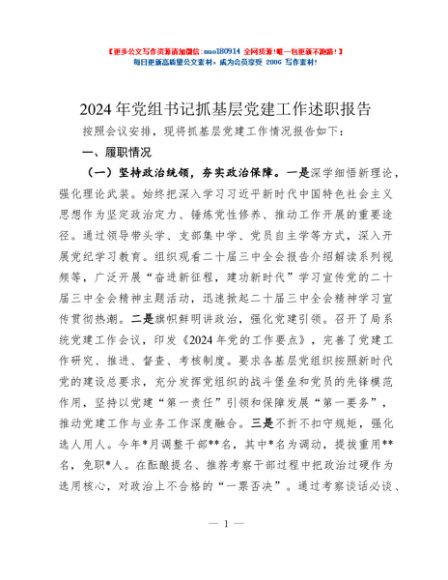 / 2024年党组书记抓基层党建工作述职报告