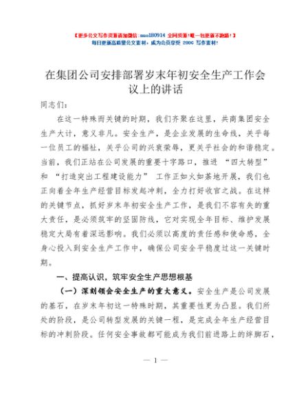 / 在集团公司安排部署岁末年初安全生产工作会议上的讲话