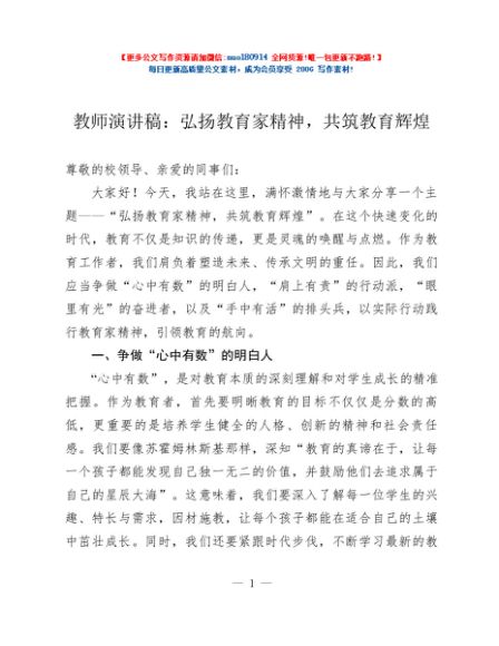 / 教师演讲稿:弘扬教育家精神,共筑教育辉煌