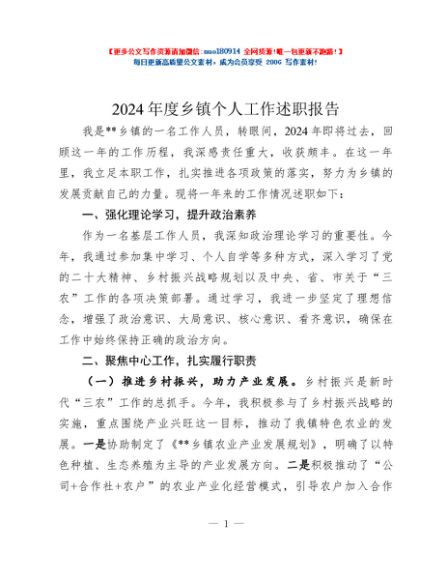 / 2024年度乡镇个人工作述职报告