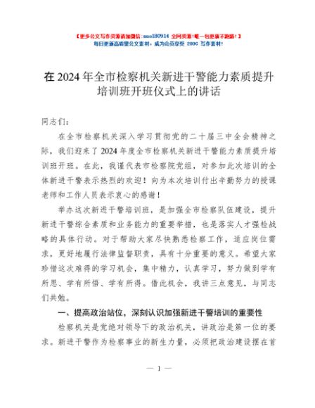 / 在2024年全市检察机关新进干警能力素质提升培训班开班仪式上的讲话