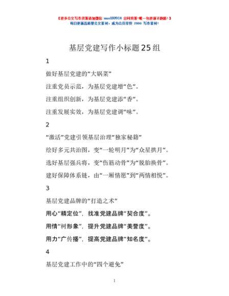 / 基层党建写作小标题25组