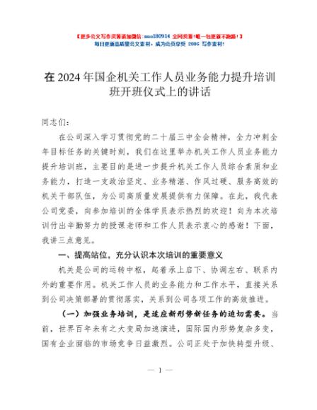 / 在2024年国企机关工作人员业务能力提升培训班开班仪式上的讲话
