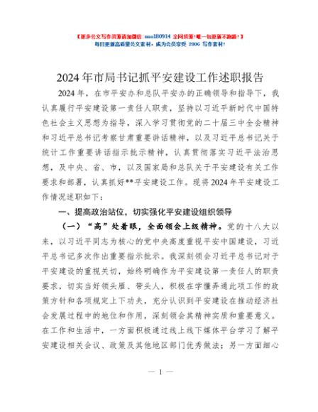 / 2024年市局书记抓平安建设工作述职报告