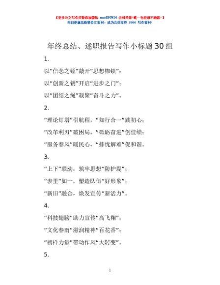 / 年终总结、述职报告写作小标题30组