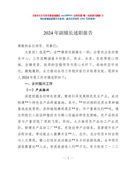 / 2024年副镇长述职报告