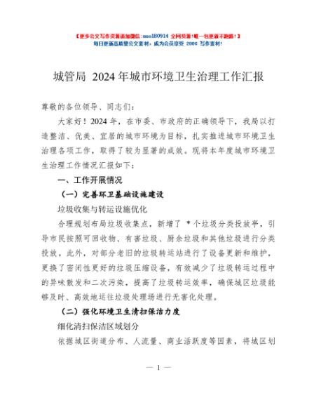 / 城管局 2024 年城市环境卫生治理工作汇报
