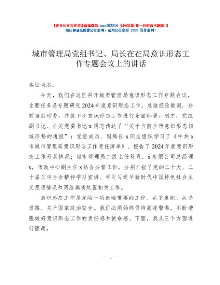 / 城市管理局党组书记、局长在在局意识形态工作专题会议上的讲话