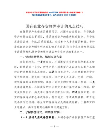 / 国有企业存货舞弊审计的几点技巧