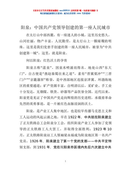 / 阳泉:中国共产党领导创建的第一座人民城市