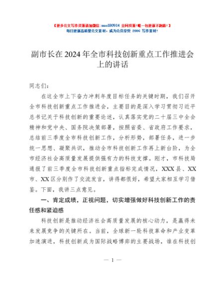 / 副市长在2024年全市科技创新重点工作推进会上的讲话