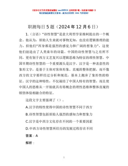 / 职测每日5题(2024年12月6日)