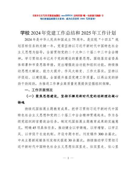 / 学校2024年党建工作总结和2025年工作计划