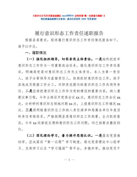 / 履行意识形态工作责任述职报告