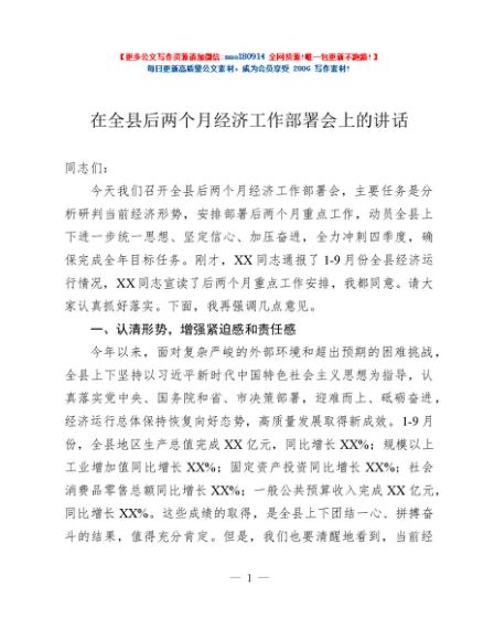 / 在全县后两个月经济工作部署会上的讲话