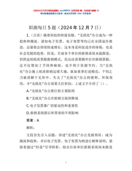 / 职测每日5题(2024年12月7日)