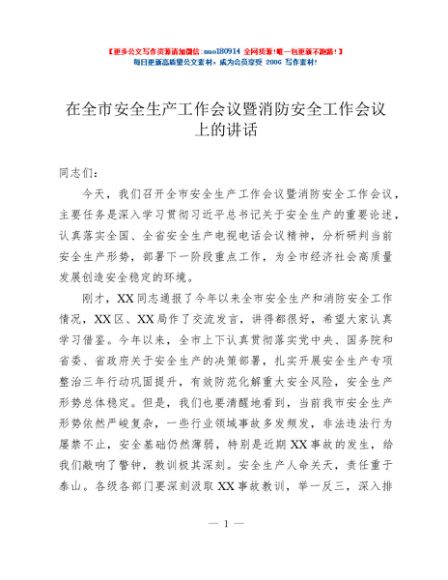 / 在全市安全生产工作会议暨消防安全工作会议上的讲话