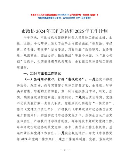 / 市政协2024年工作总结和2025年工作计划