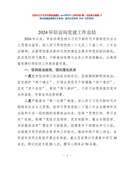 / 2024年信访局党建工作总结