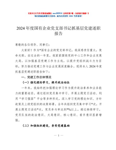 / 2024年度国有企业党支部书记抓基层党建述职报告