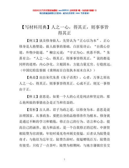 【写材料用典】人之一心,得其正,则事事皆得其正