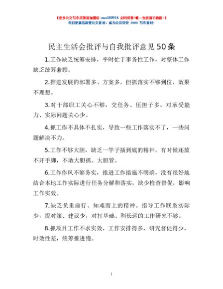 / 民主生活会批评与自我批评意见50条