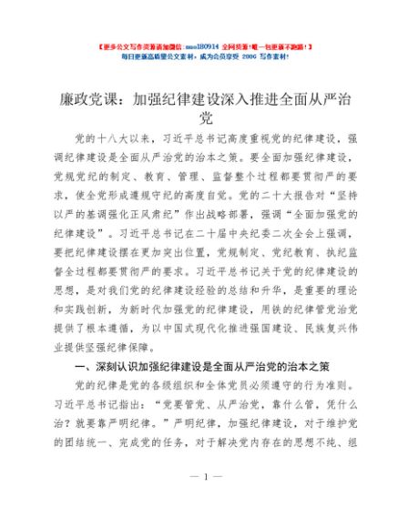 / 廉政党课:加强纪律建设 深入推进全面从严治党
