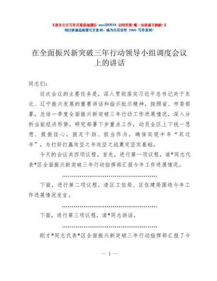 / 在全面振兴新突破三年行动领导小组调度会议上的讲话