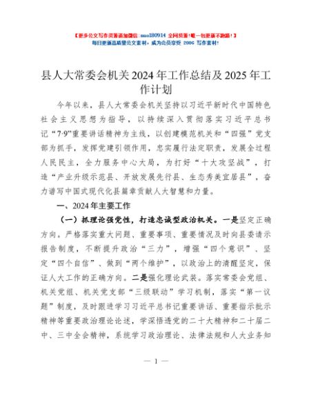 / 县人大常委会机关2024年工作总结及2025年工作计划
