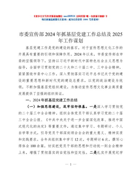 / 市委宣传部2024年抓基层党建工作总结及2025年工作谋划