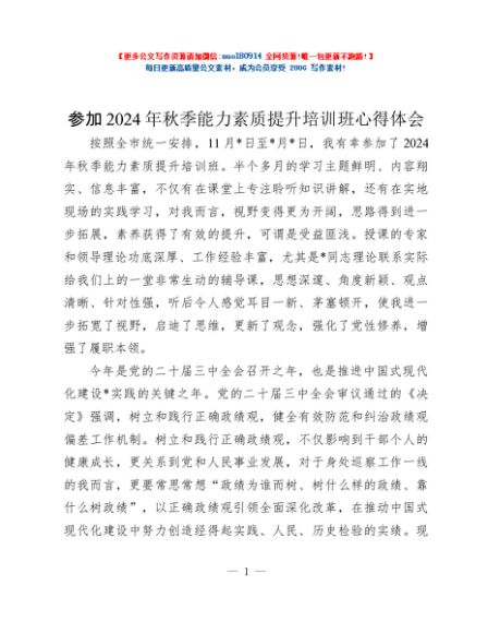 / 参加2024年秋季能力素质提升培训班心得体会